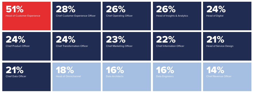 This is a snapshot of the respondents’ job titles: Chief Service Quality Officer, Vice President of Support Services, Director of Product Management, Director of Operations, Director of CX, Vice President of Customer Care, CX Transformation Manager, Global CS and Logistics Lead, Head of Omnichannel Management, Director of CX Management, Customer Journey Owner, Global Head of Customer Operations, Customer Experience Transformation Leader, Customer and Employee Advocacy Director, and Chief Commercial Officer.