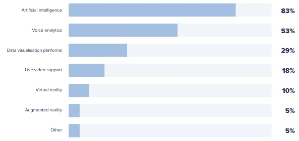 Beyond this disruptive technology, various other tools and solutions are currently on the radar of customer management leaders, namely voice analytics, data visualisation, and live video support, with small pockets also looking at virtual reality and augmented reality. While this collection may not be as headline-grabbing as AI, they all hold considerable potential to reshape how brands engage with their customers and create innovative interactions throughout different facets of their contact ecosystem.